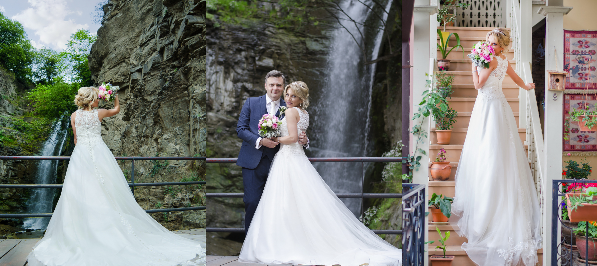 We had a wonderful wedding day in Tbilisi organized by Click Wedding. The flowers at the reception were perfect for the surroundings and were all of superior quality and arranged immaculately, giving the room a rainbow of colors. Every guest was impressed and it helped make it a perfect occasion. The photographer was first rate. He went out of his way to find the best locations around old Tbilisi, making the wedding photos some of the most seminal and sublime wedding photos of a bride and groom you could ever see. The all-important wedding dress was shown to the best of its design, and his skill in capturing the occasion, from arriving at the chapel, getting married, post-wedding photoshoot and reception with family afterwards made the wedding perfect. Each photo captured every moment in time that still seems as fresh as the day they were taken when you look at them. @ClickWeddingGeorgia - Highly recommended ! With love Mark & Katrin