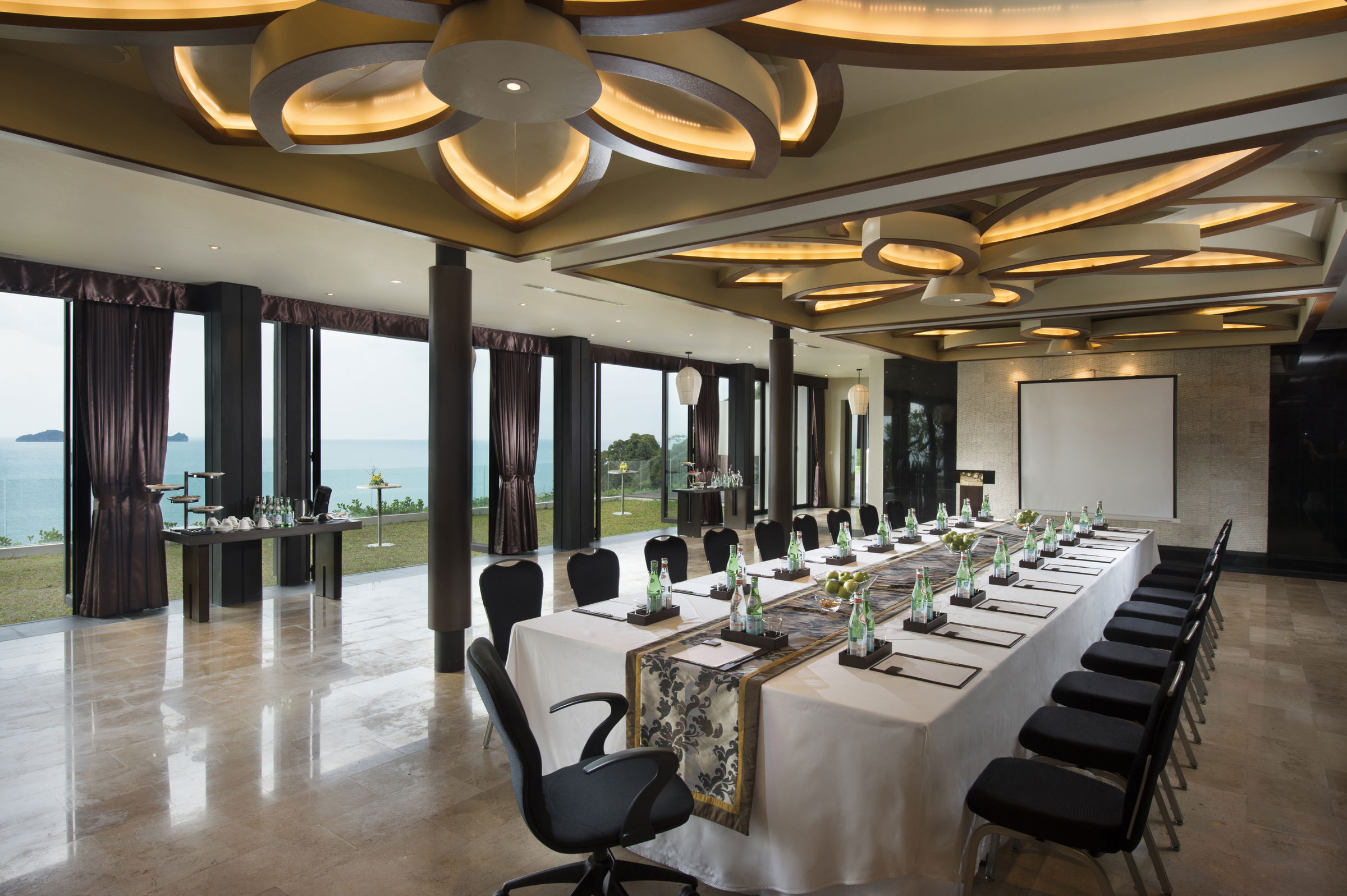 Our nearly 84 square meters meeting room can accommodate up to 130 guests, featuring a grass lawn with ocean views. Outdoor meeting areas, dedicated meeting planners, modern A/V equipment, and trained techs are available.