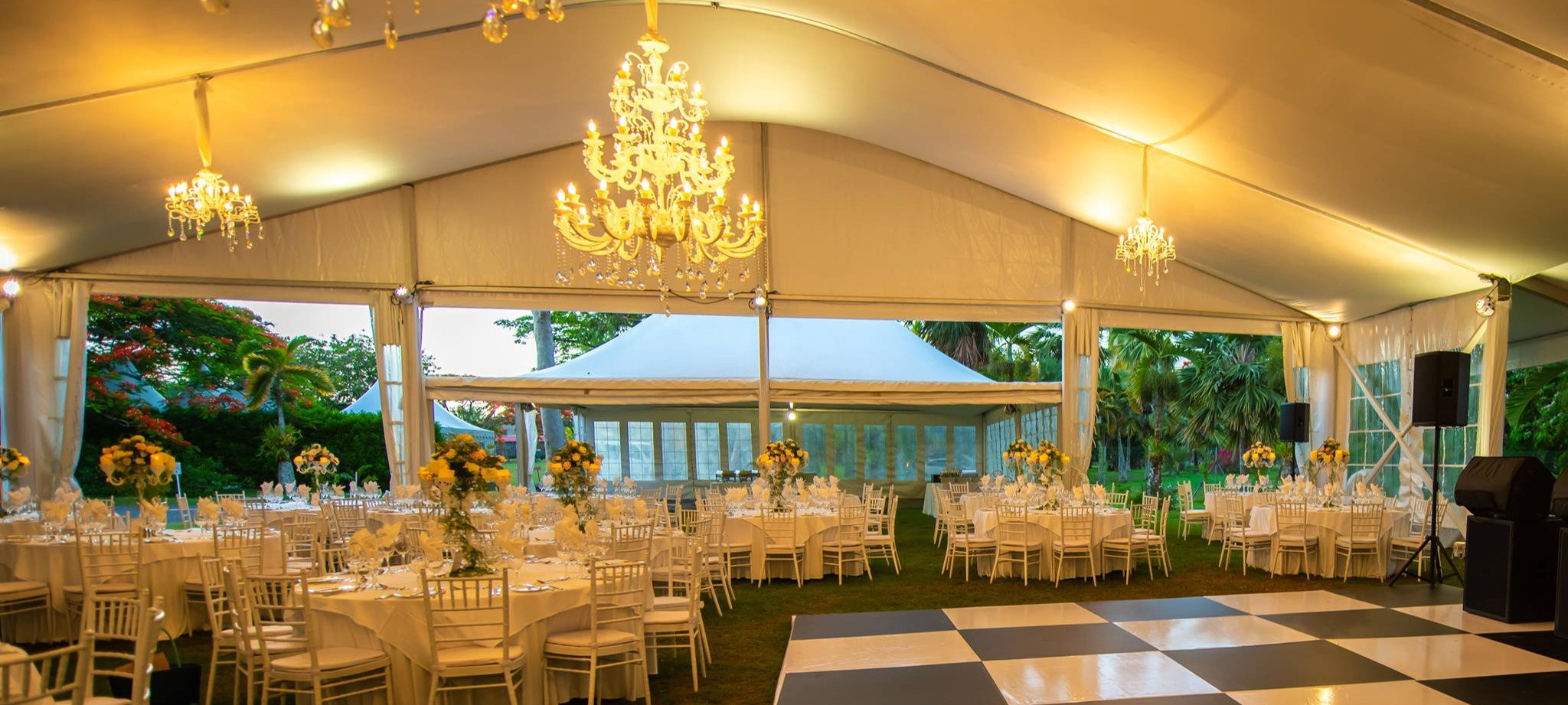 We are specialized in the rental of aluminum hall, marquees, stretch tent (Bedouin), illumination, lightings and decorations (more than 50 designs). Our Aluminum Marquees are at a high quality with 99% Black out with white Ferrari fabrics, fire & wind resistant, sunshine free and flame retardant. To ensure a complete safety, the marquees have a heavy tension beam. Most of our equipment are from European countries (Italy, Belgium and South Africa) and have the highest specifications. We take pride in putting together highly customized events solutions for VVIP weddings, leading organizations in Mauritius, public bodies and corporate events.