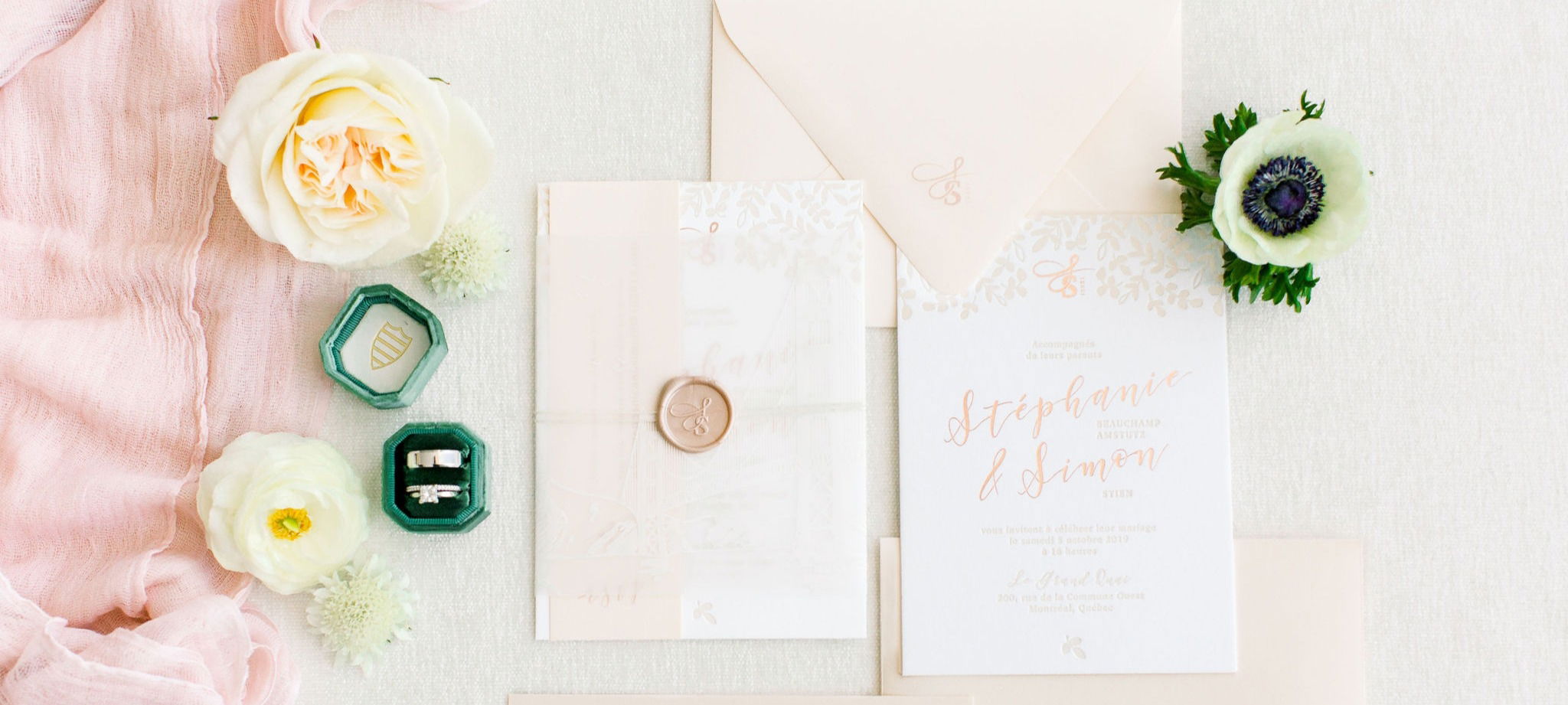 Our price starts at $2500 Canadian dollars for a custom suite of invitation including luxurious card stock and printing technics, such as foiling or letterpress.