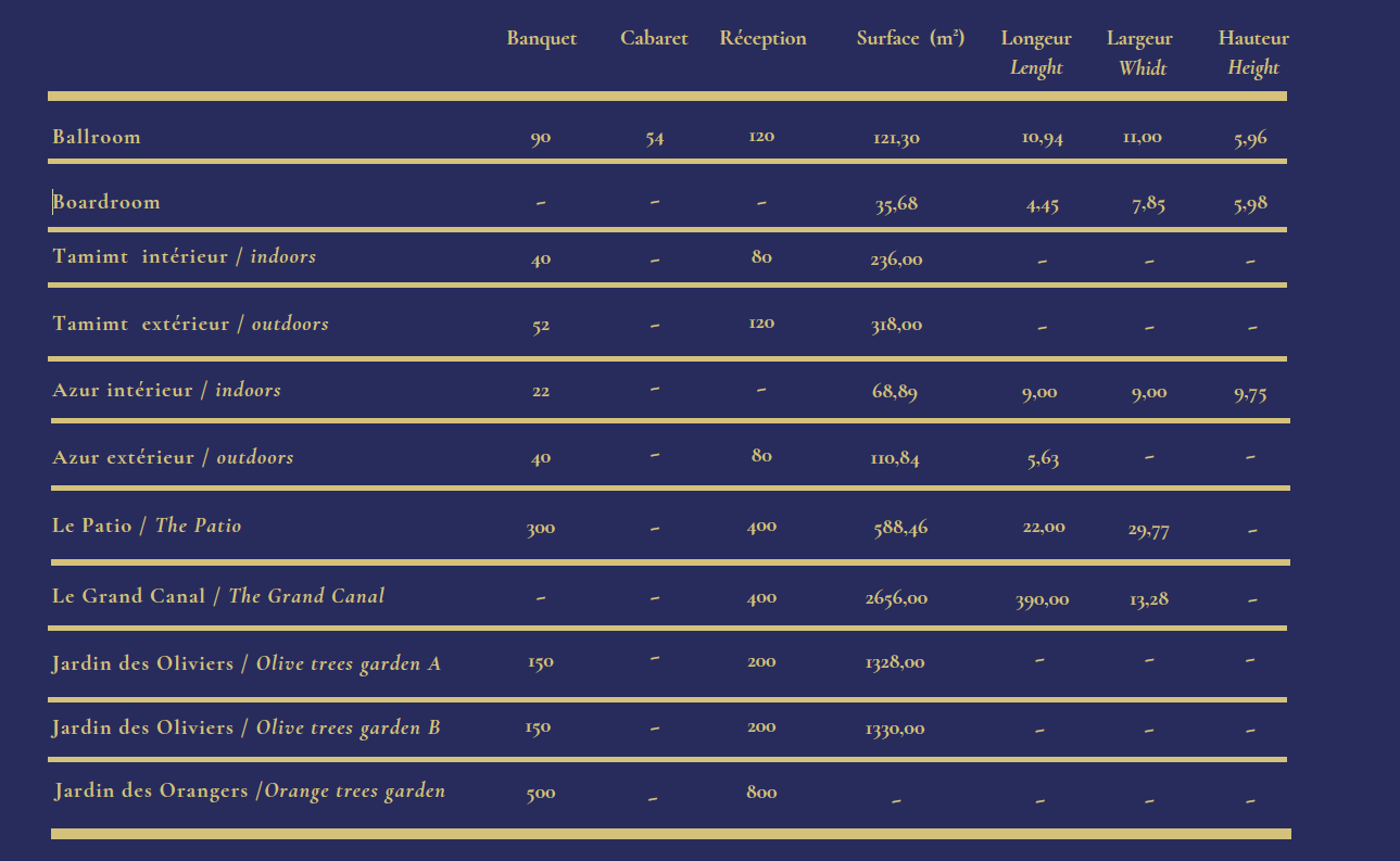 Invite your guests to the Ochre City of Marrakech and let us make your occasion the best it can be, against a backdrop of traditional architecture, and panoramic views of the Atlas mountains, orchards and gardens. Be it a birthday party, an engagement or a wedding for up to 400 guests.