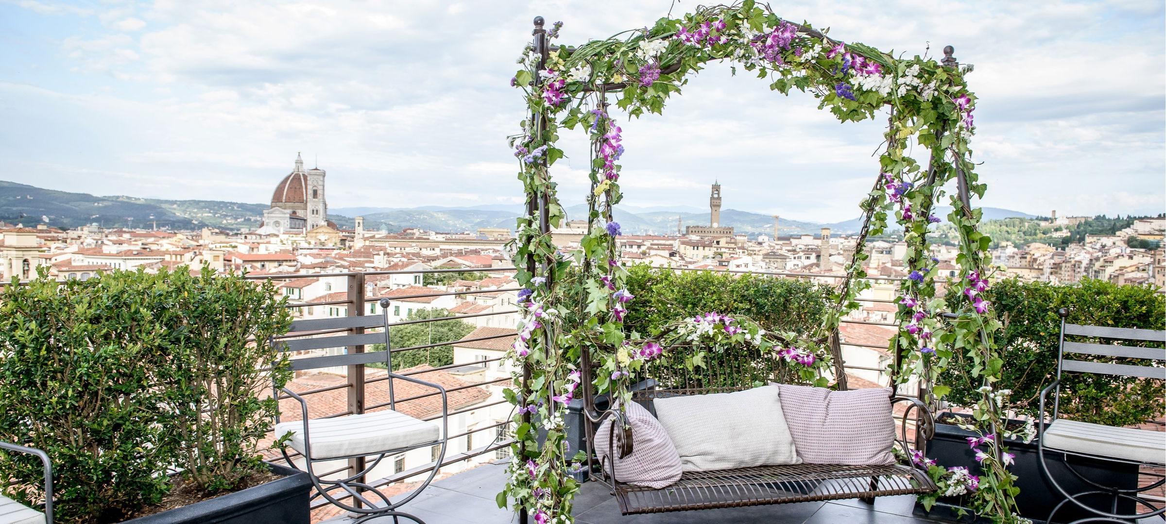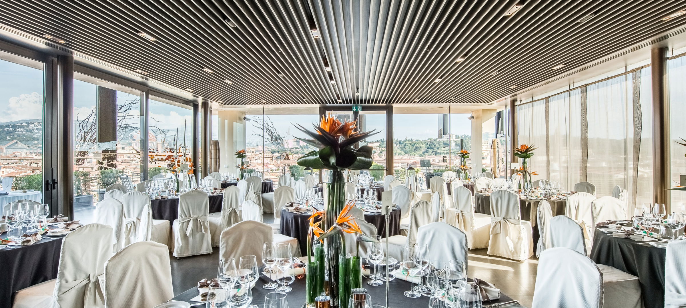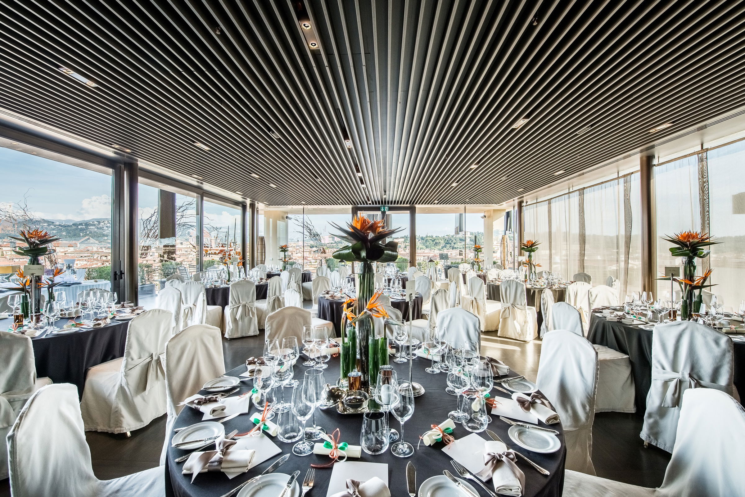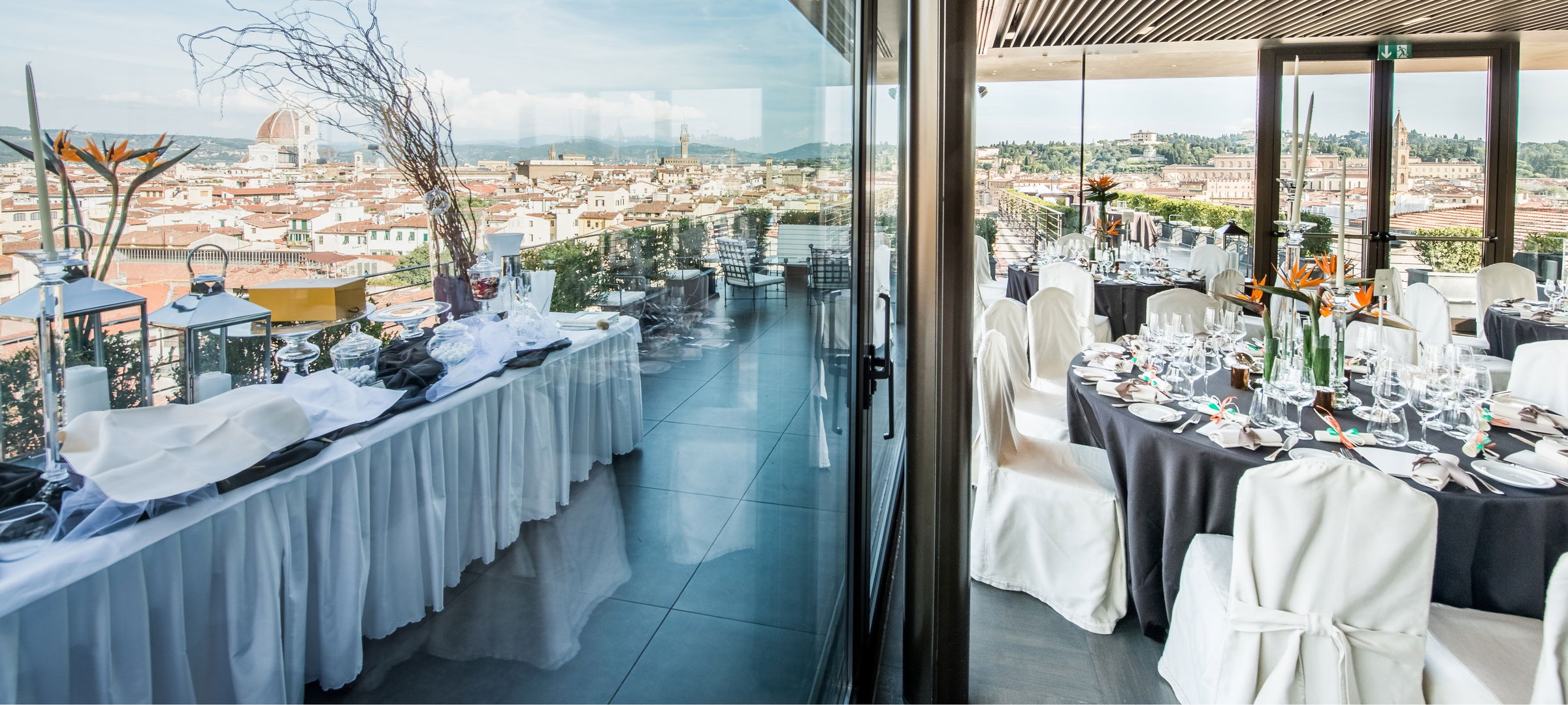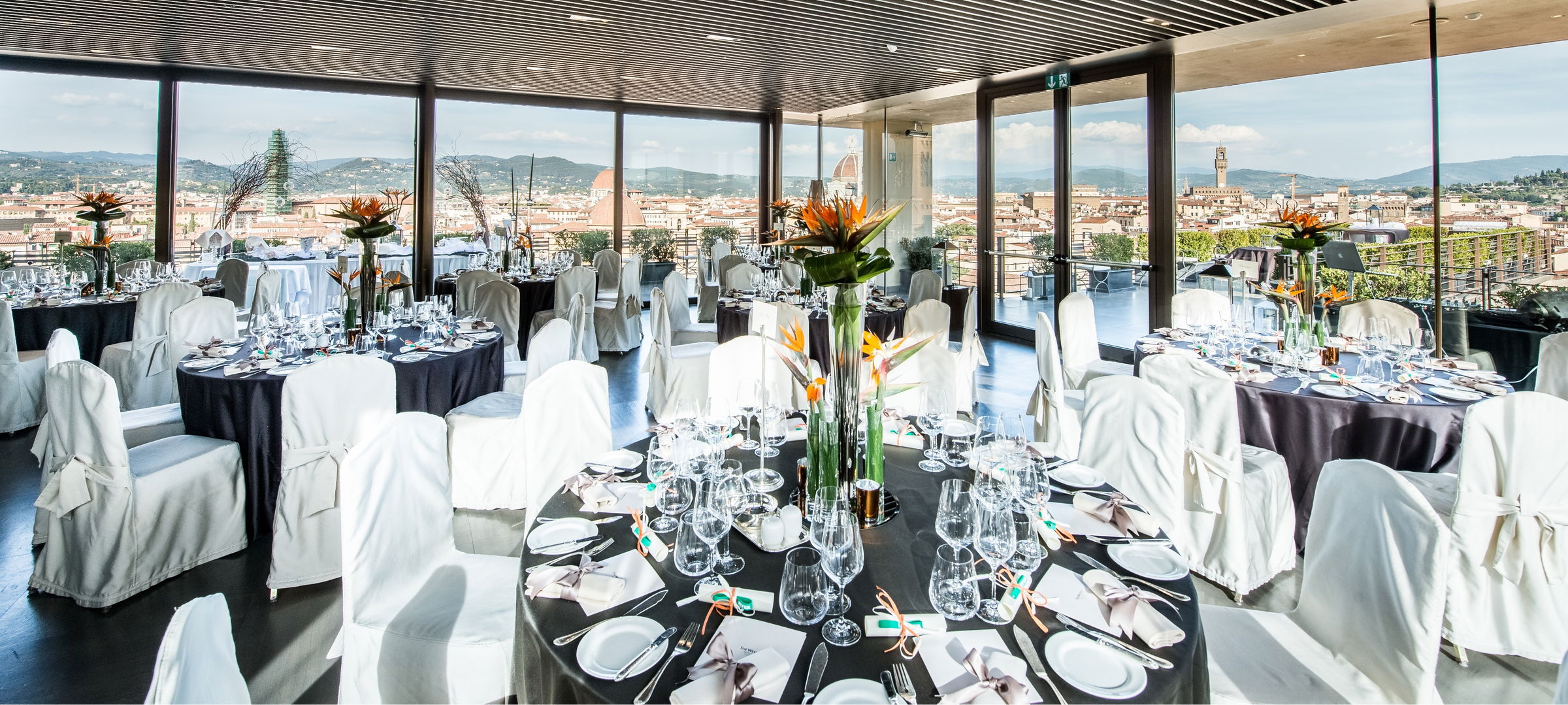 Se·sto On Arno Restaurant, the Rooftop Bar and Restaurant of the Westin Excelsior almost entirely made of glass, is a unique location provides the most breathtaking 360 degree view of the whole city over the rooftops, the picturesque hills of Tuscany and the bell tower with the River Arno and The Ponte Vecchio as background.